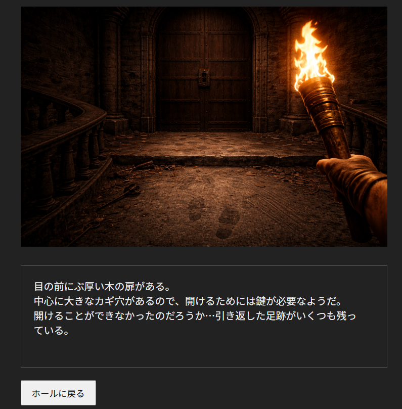 本作は、テキストと画像で進む短編アドベンチャーゲームです。